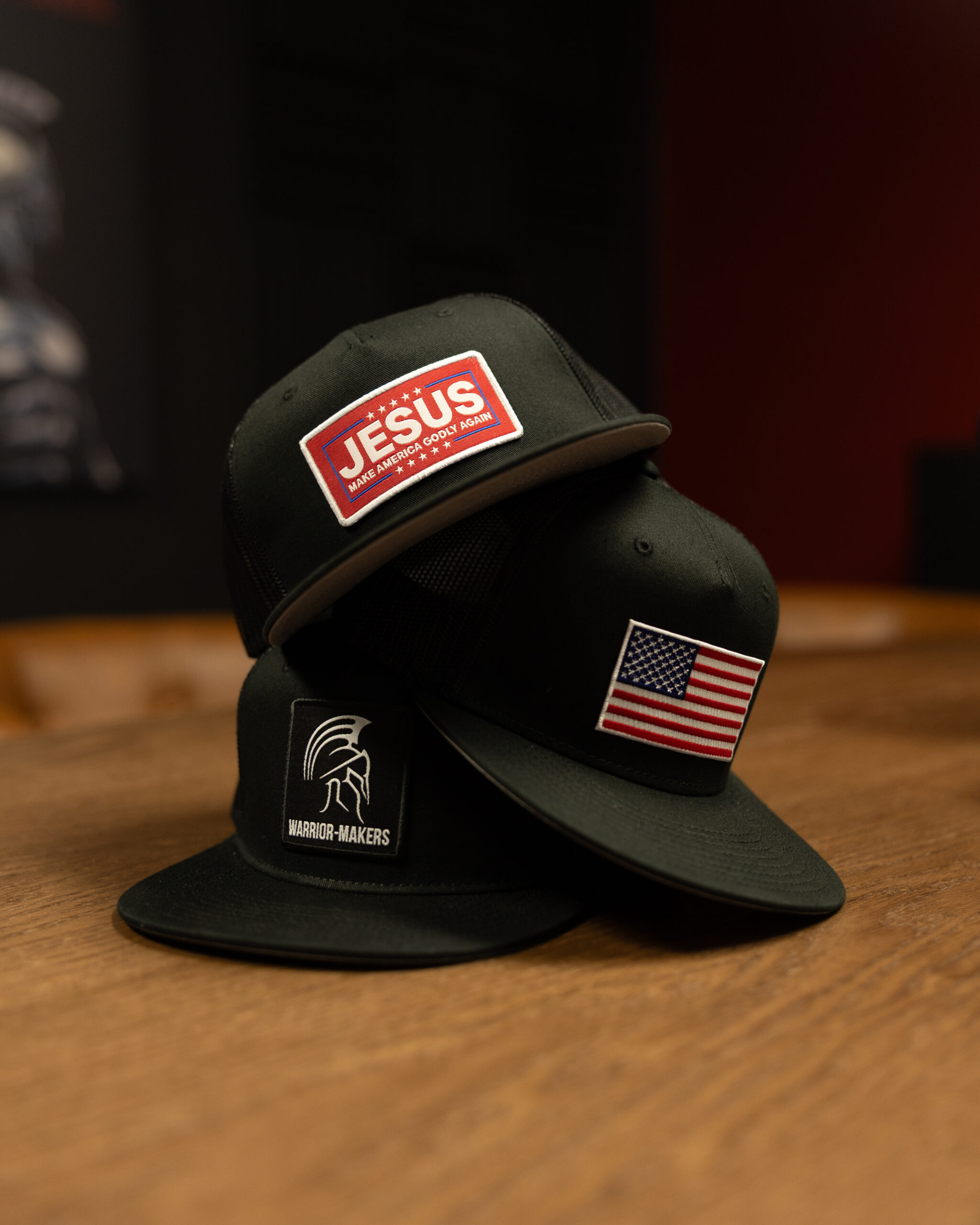| FRONT LOGO | Warrior Makers, American Flag, JESUS |